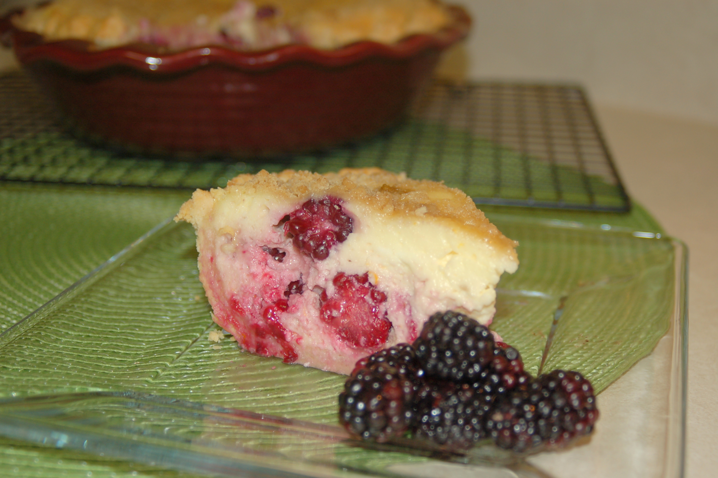 some options and let her choose. Fittingly, a long time lover of blackberries, she chose a Sour Cream Blackberry Pie. This pie is unlike any that I’ve ever made. Its uniqueness comes from a sweetened sour cream mixture poured over the fresh blackberries producing a filling that bakes up much like a moist cheesecake. This one-of-a-kind pie represents this one-of-a-kind daughter who has brought an extraordinary sense of responsibility and love to my world.
